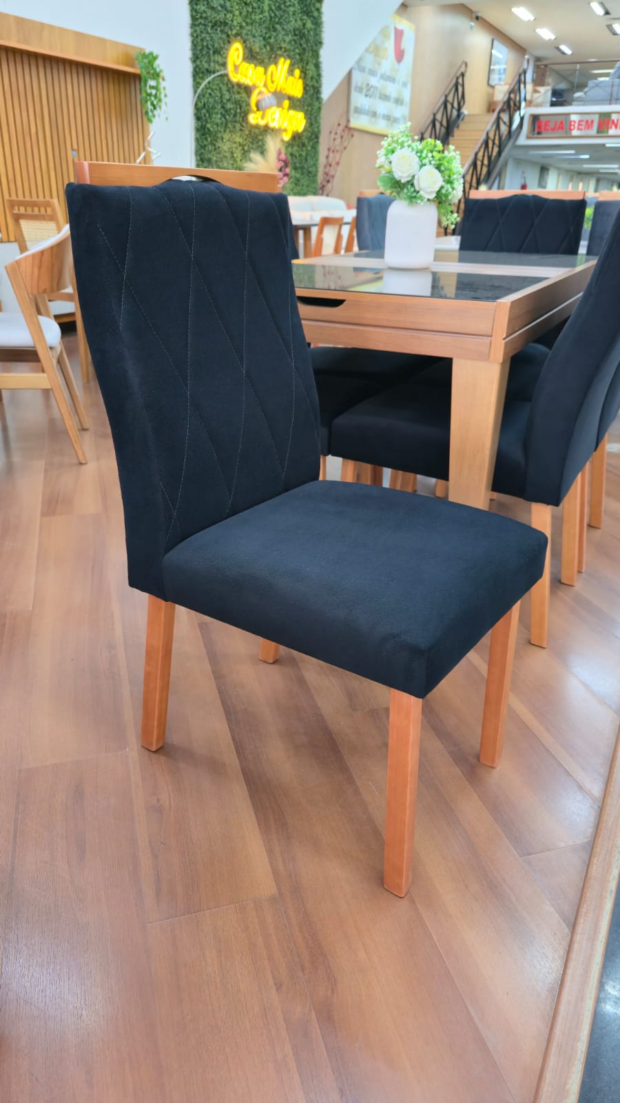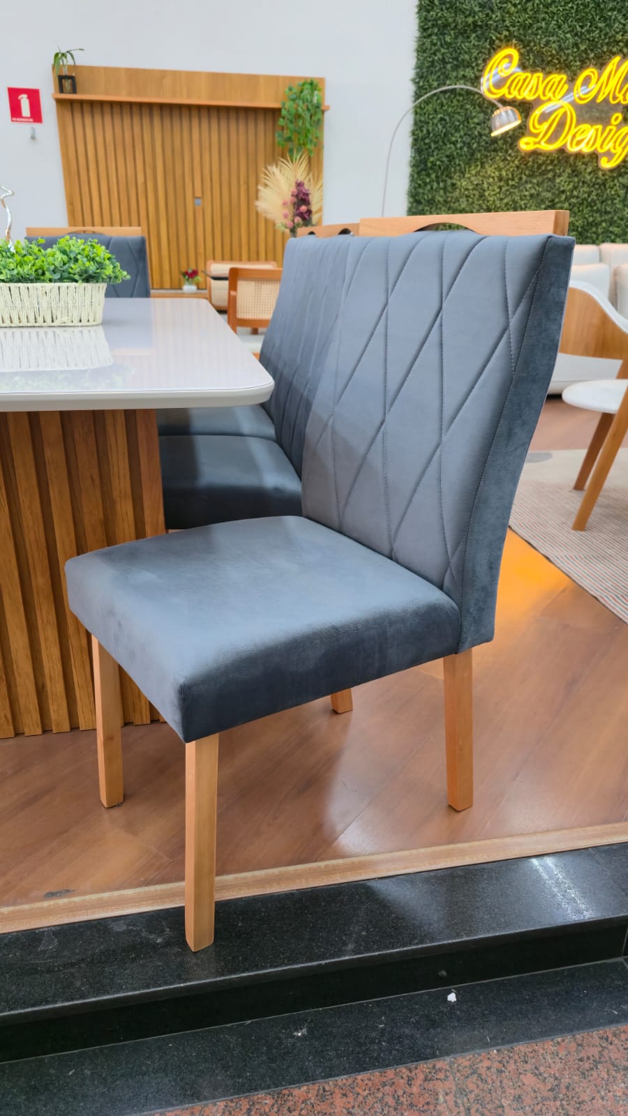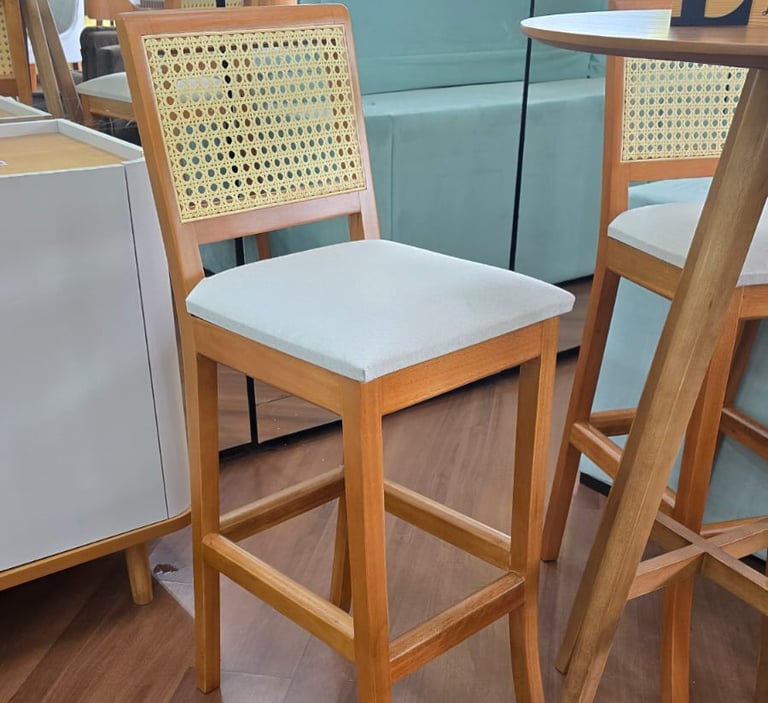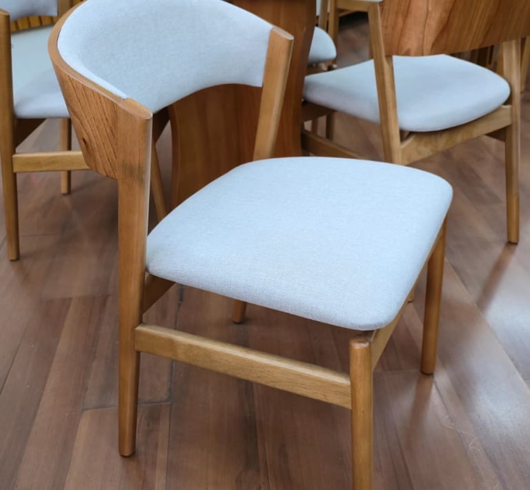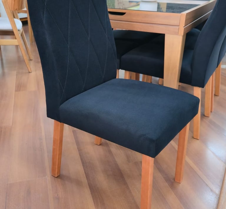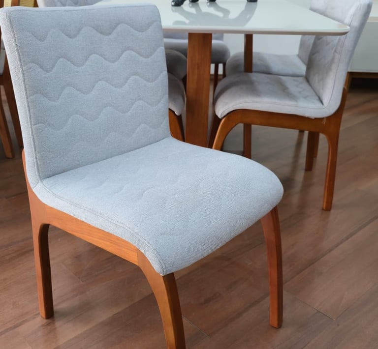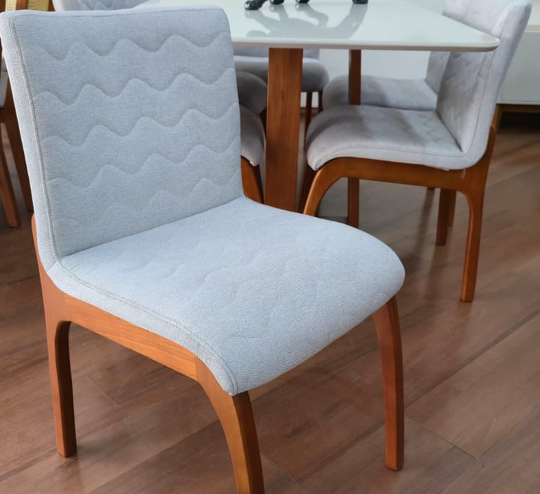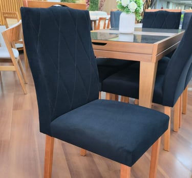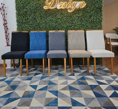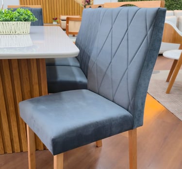As Cadeiras Lisboa possuem detalhe de madeira na parte superior do encosto podendo ser usado como puxador evitando o contato direto com o tecido.