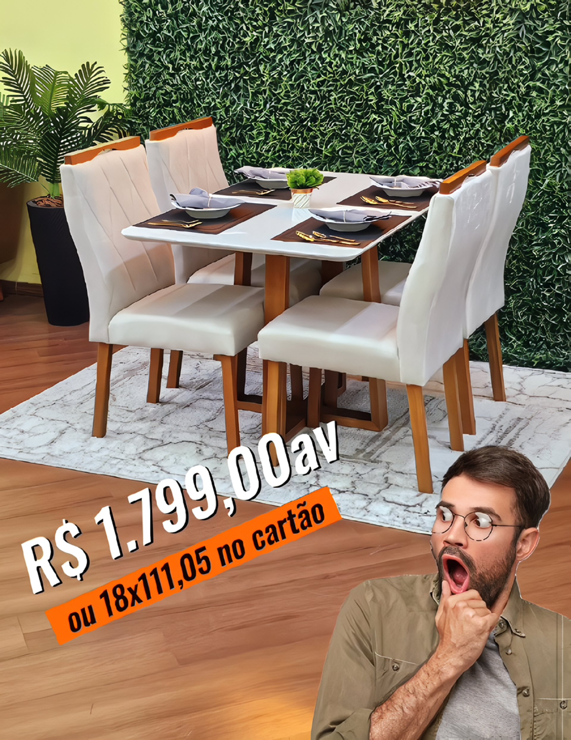 Mesa Ester 210 x 100 + 6 Cadeiras Lucy