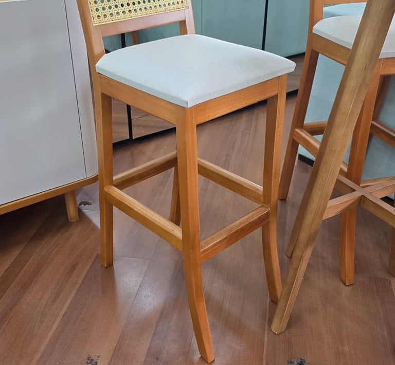 Estruturada em madeira maciça, Pés com sistema de trava e feltros.